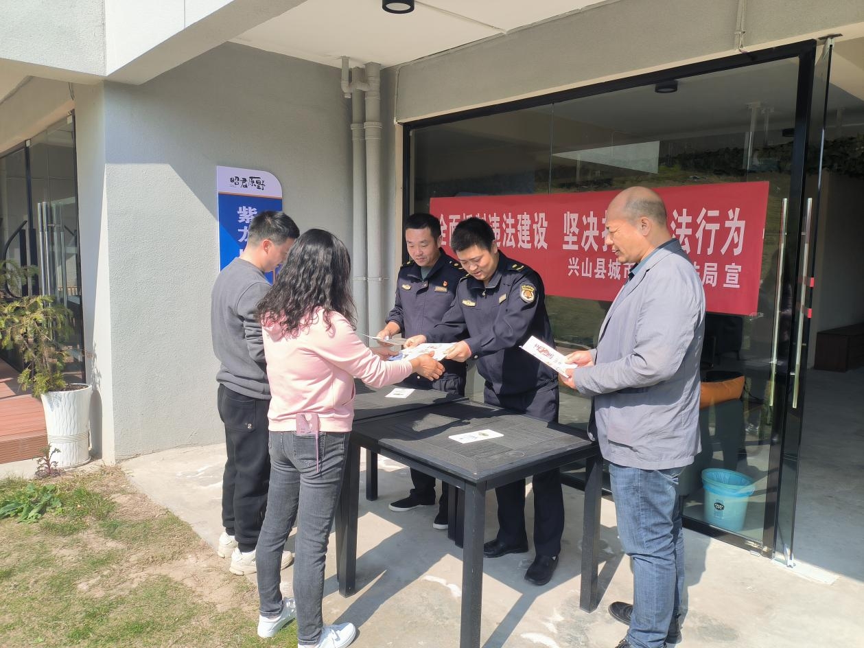 宣传活动中,针对乡镇物业小区违建现象,执法人员向居民及物业进行了普法宣传,现场发放宣传手册,普及《中华人民共和国城乡规划法》《宜昌市禁止违法建设管理办法》等相关的法律法规,以案释法讲解违建的危害,进一步强化了居民法治意识。小区物业是抑制违法搭建的“一双眼”和“第一关”,加强普法能更好地从源头抑制违建增量,对于城乡容貌的维护与提升起着重要作用。