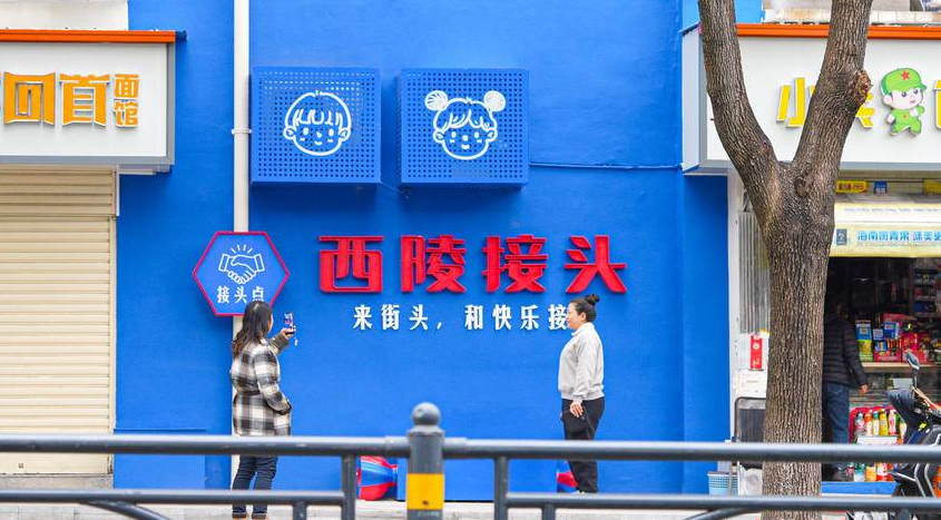 改造后的体育场路,不仅店招雅致统一,更涌现出多处兼具颜值与情怀的街头小景,成为市民游客打卡留影的新去处,五处特色打卡点串联起街区新风貌。蓝色“西陵接头”主题墙,以简约线条勾勒西陵人文元素。马卡龙色系玫瑰转角,成为街头灵动的视觉焦点。本土卡通雕塑小景,使街区既有精致格调,又充满生活气息。花境女孩主题彩绘,藏着宜昌独有的烟火浪漫。我爱宜昌浮雕,让打卡更具归属感、层次感。